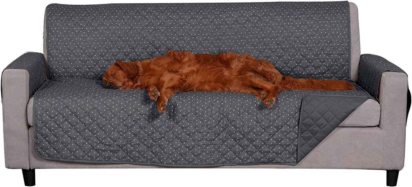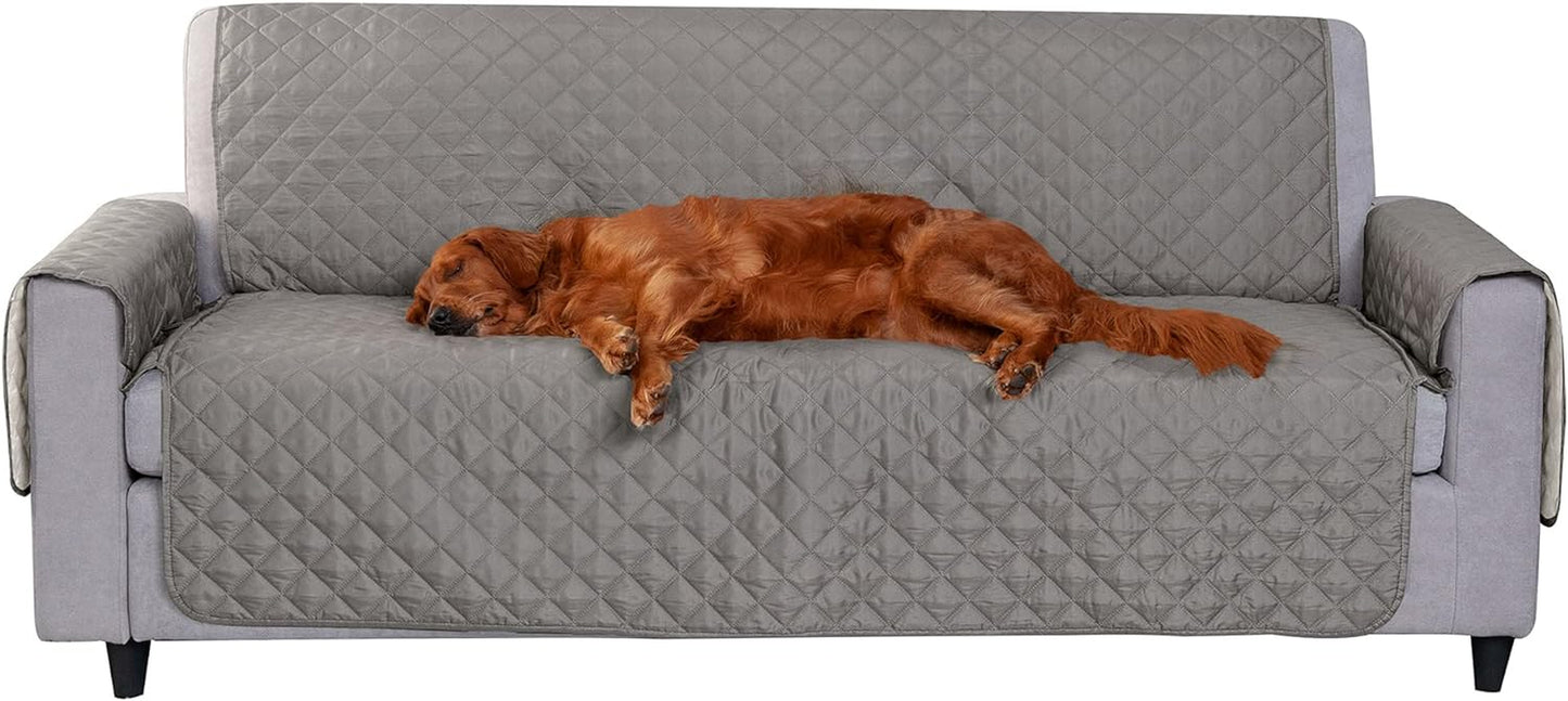 Large Sofa/Couch Cover Protector for Dogs, Cats, & Children - Water-Resistant & Reversible-Tone Pinsonic Quilted Living Room Furniture Cover - Gray/Mist, Large Sofa