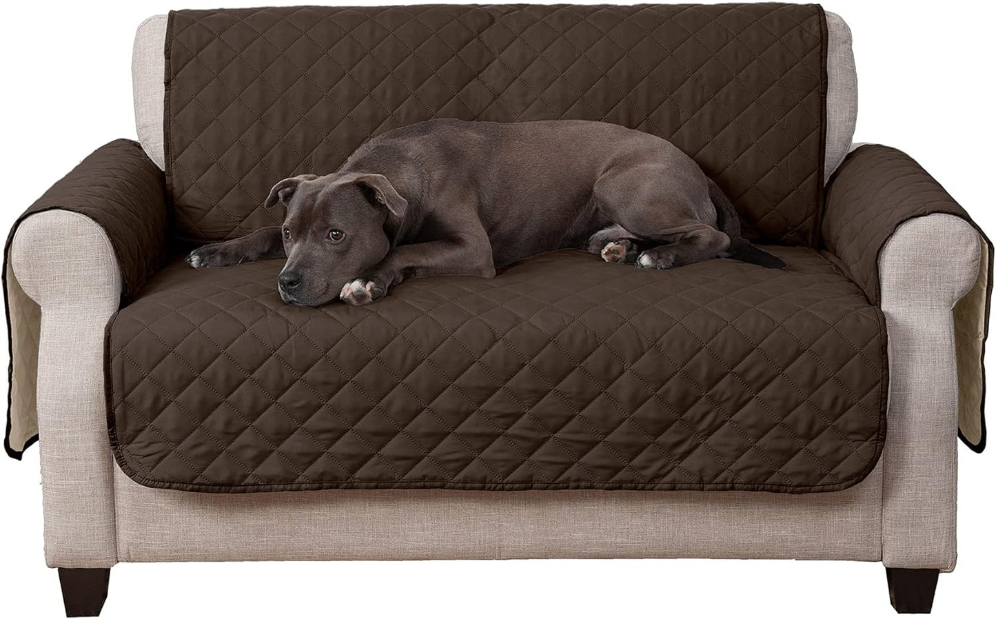 Fully reversible, water repellent, soft-quilted furniture protectors help keep pet hair, moisture, and little pet accidents off your furniture. Furhaven Water-Resistant Reversible Two-Tone Furniture Protector Cover protects your furniture from your pet’s daily use with water-resistant coating and pinsonic quilting. Pinsonic quilting is a thread-free, durable method of electronically bonding the water-resistant fabric with ultrasonic heat; no holes are sewn maximizing water resistance. Our machine washable reversible cover is easily secured with no-fuss cushion anchors and sturdy elastic bands. Furhaven quilted-fabric furniture covers let your dog or cat lounge in their favorite spots without putting any little pet-messes directly on your furniture.