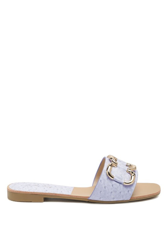 Casual Slide Flats with buckle detail. The broad strap holds feet well - for everyday comfort and all-day wear!