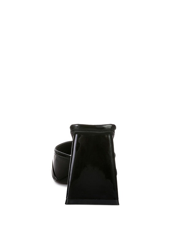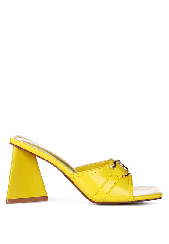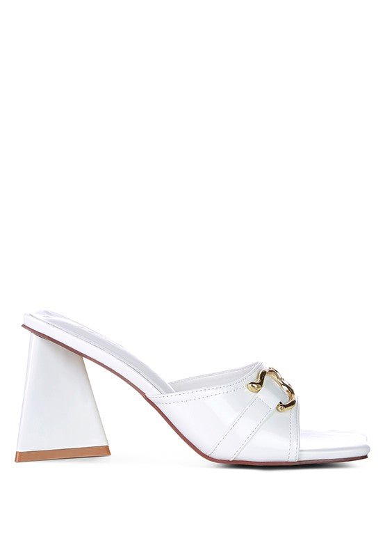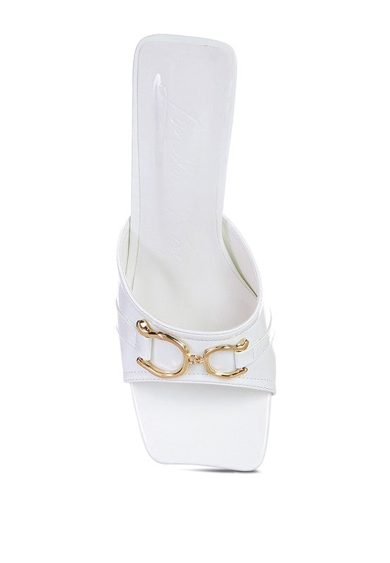 The slip-on sandals are sexy, chic, and also easy to wear. The golden metal buckle detail on the front is stylish and makes the sandals look rich and sexy.